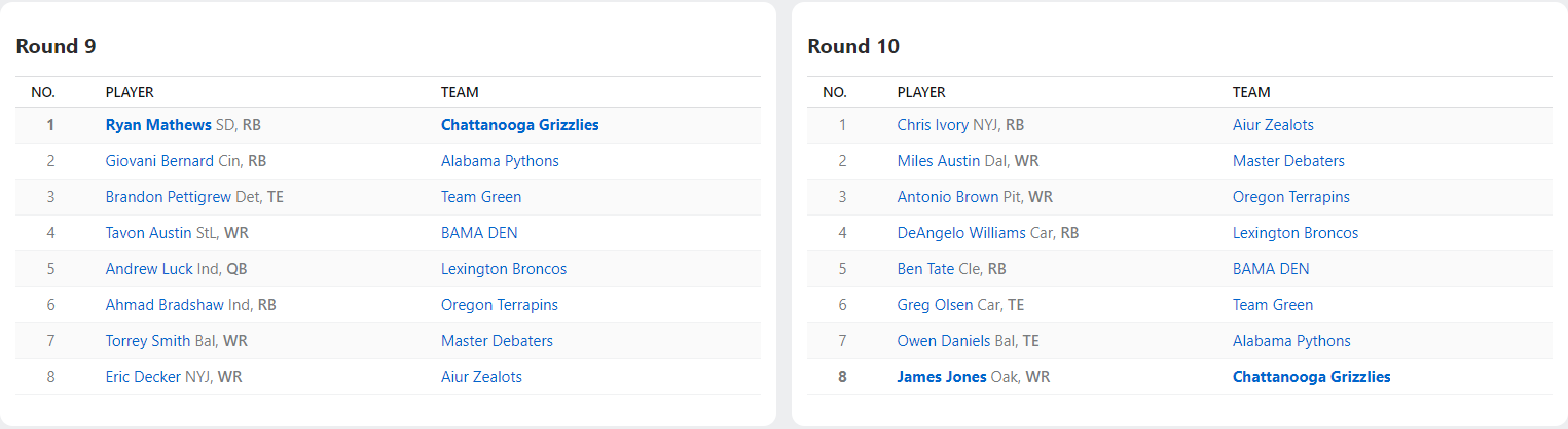 2012 Draft Results