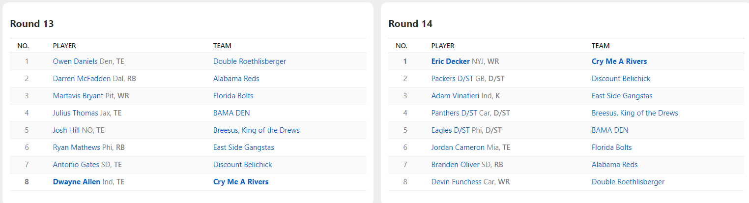 2013 Draft Results
