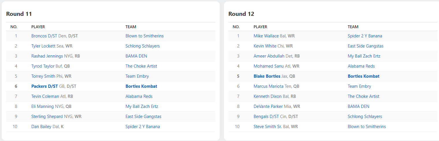 2016 Draft Results