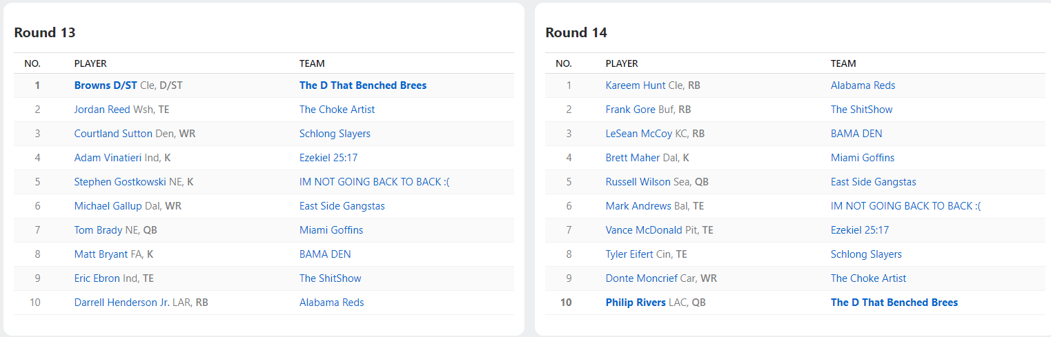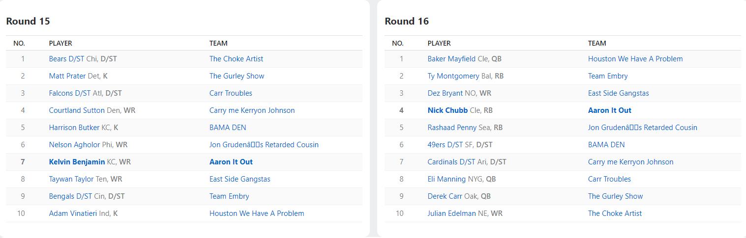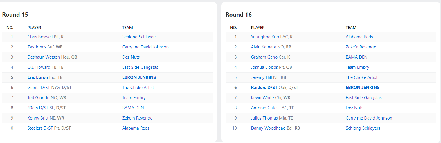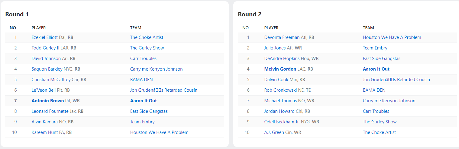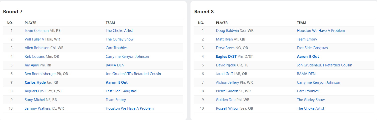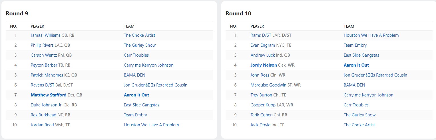 2018 Draft Results