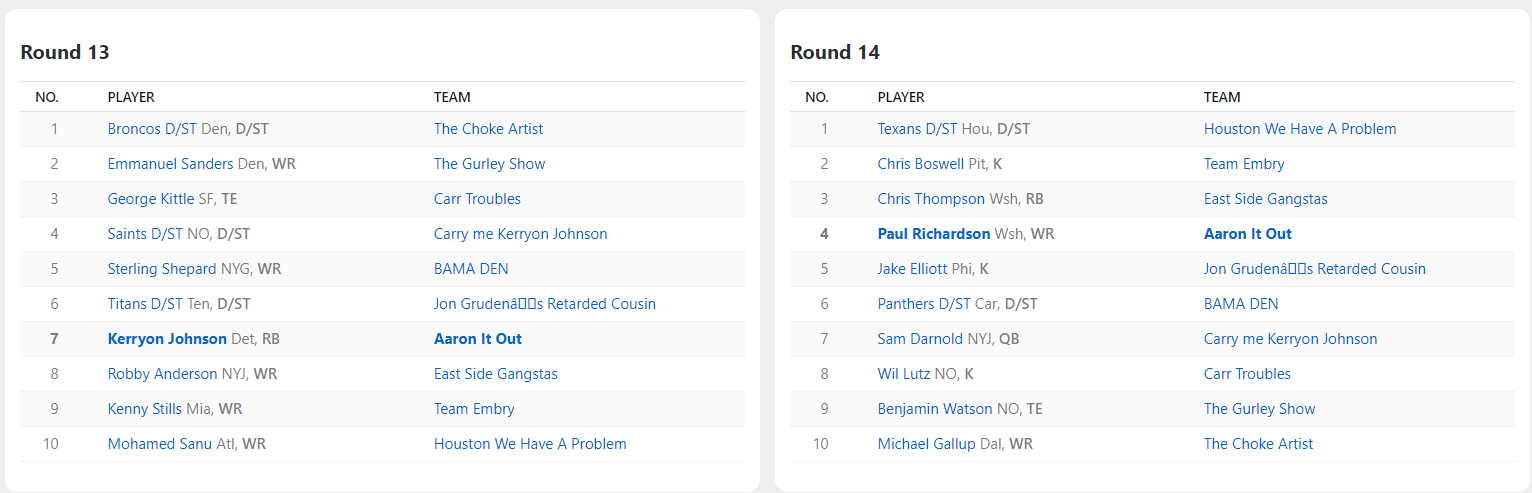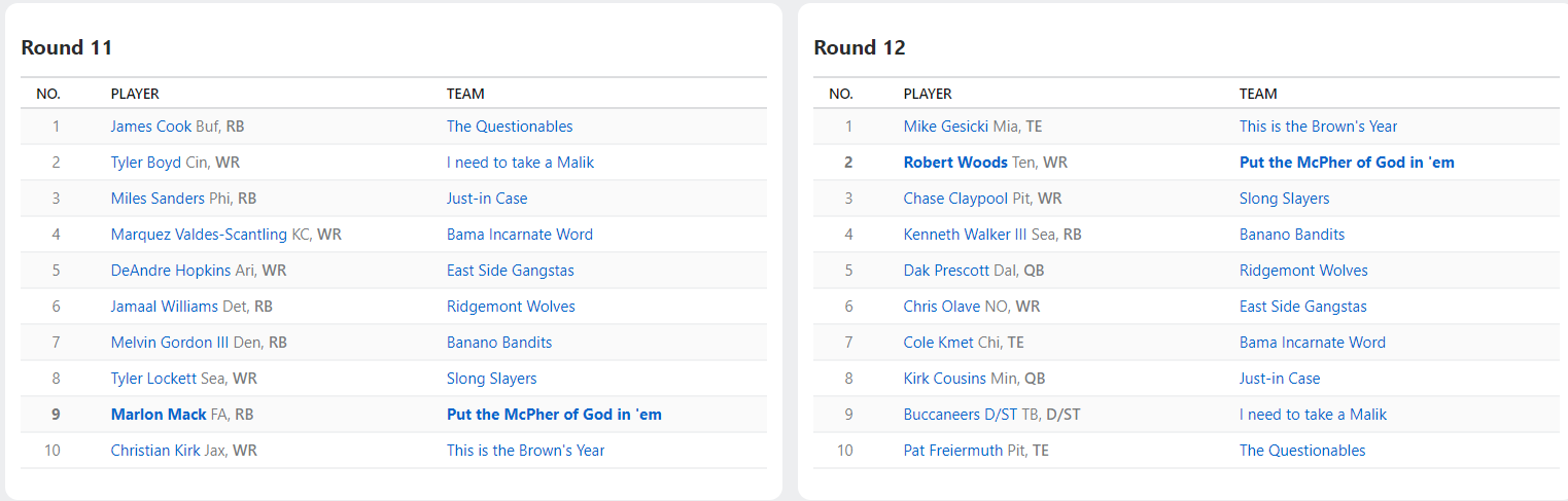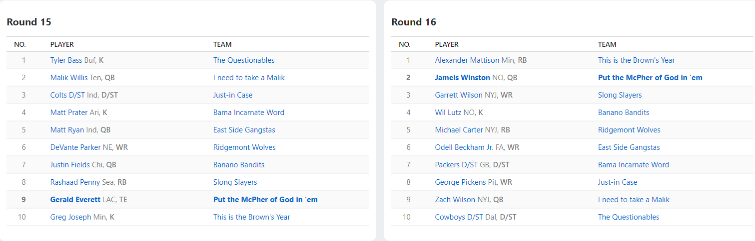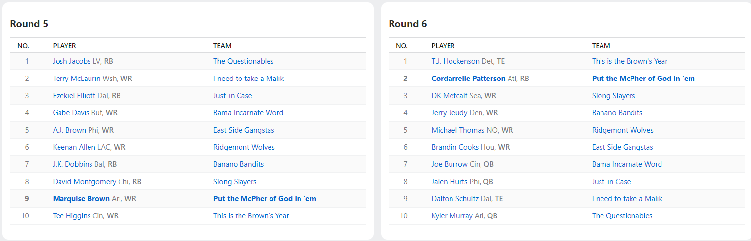 2022 Draft Results