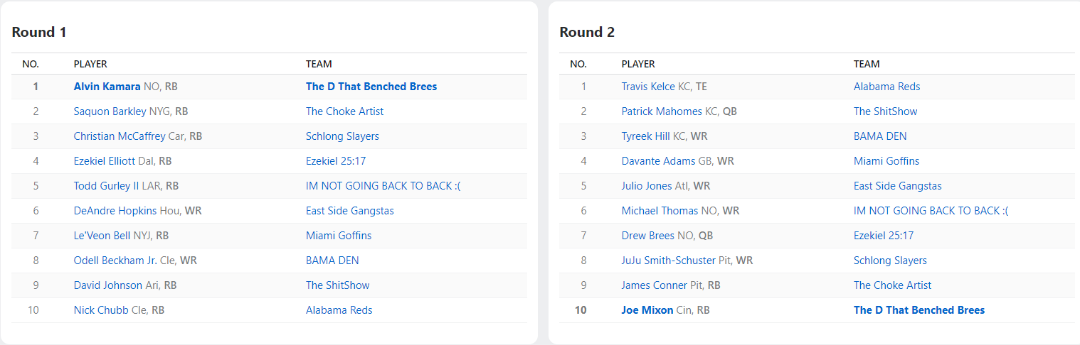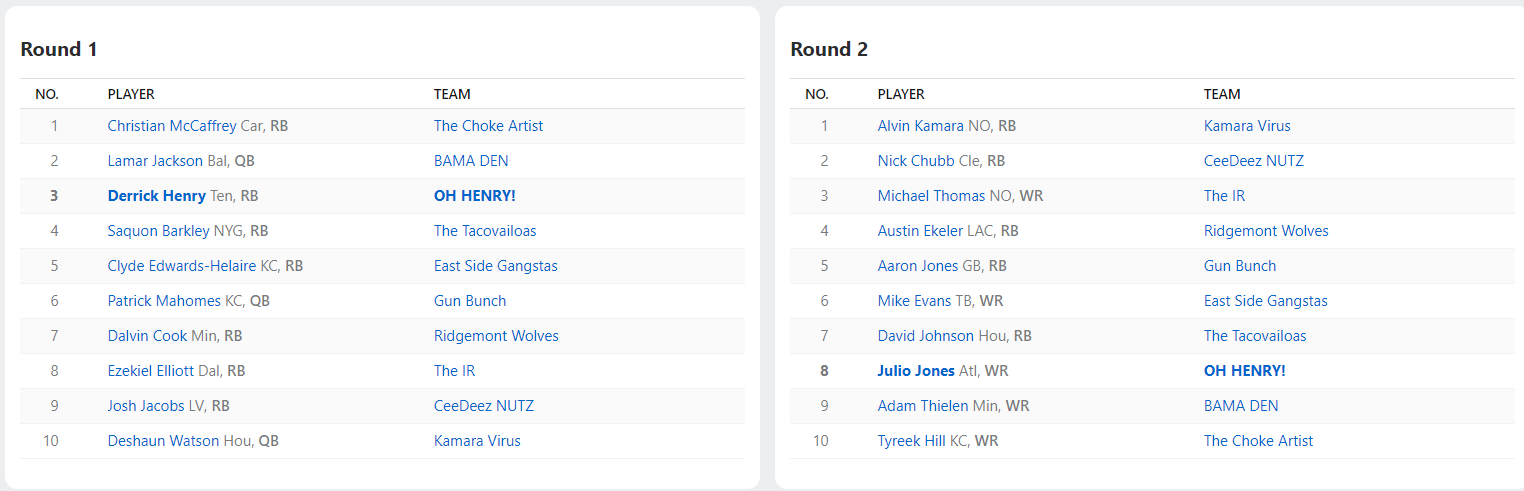 2020 Draft Results