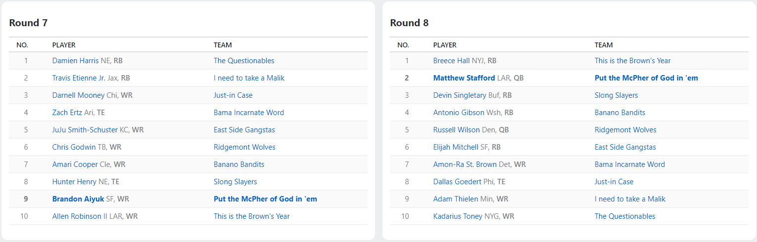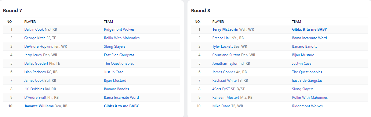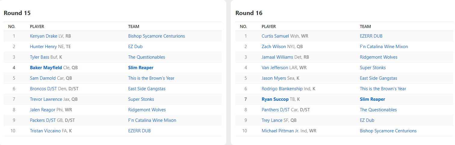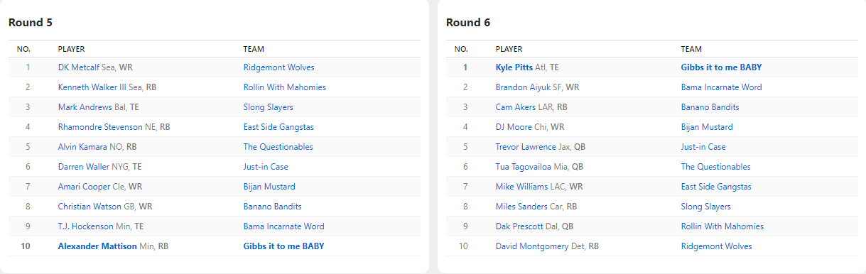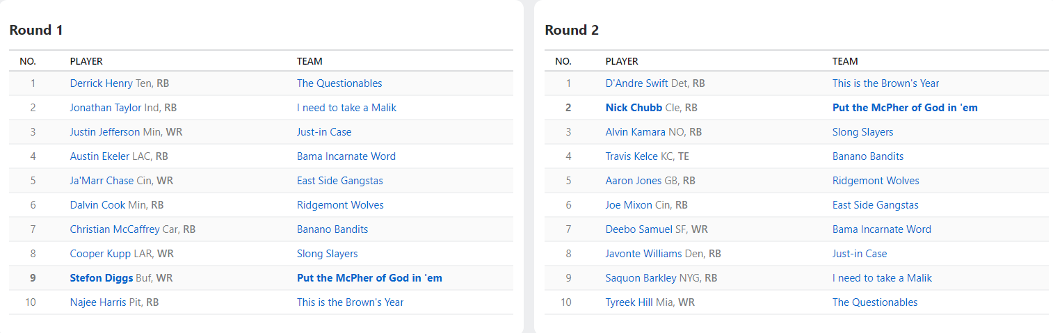 2021 Draft Results