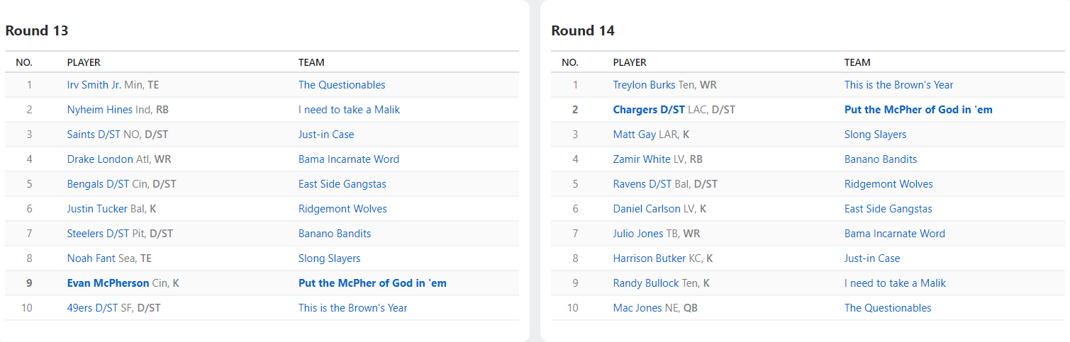 2023 Draft Results